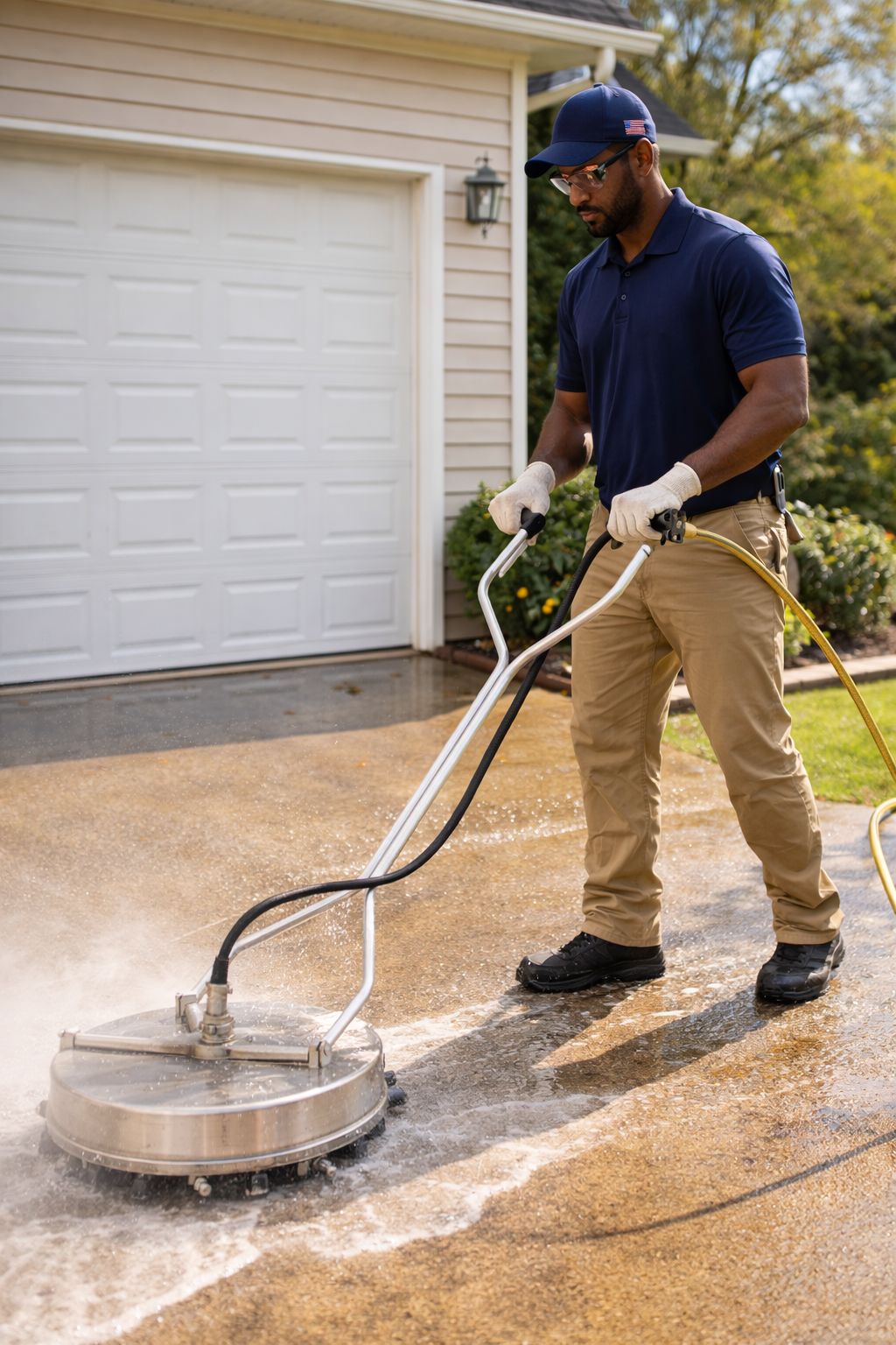 We often utilize surface cleaner attachments for flat areas like driveways and patios. These tools ensure even pressure distribution, eliminate striping, and provide a uniform, professional finish that standard pressure washing alone cannot achieve.